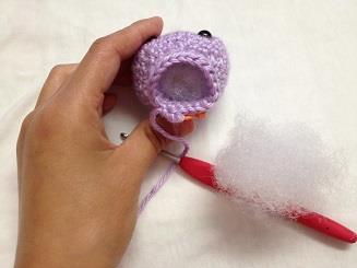 - Note: Stuff the head firmly with fiber filling now.