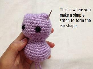 - Stitch between the two points to define the ear shape, then hide the remaining yarn inside the body.