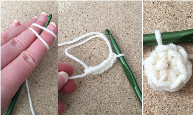 - Close the ring by pulling the yarn tail completely