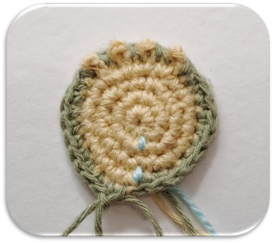Using your main green/mustard yarn.